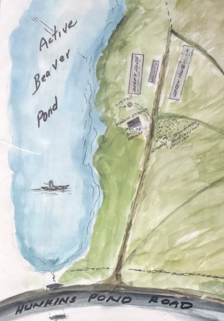 Our Camp office is collocated with our Farm Stand at the bottom of the hill on Hunkin’s Pond road between Parker Hill Road and Wells road, Next to the gorgeous beaver pond.